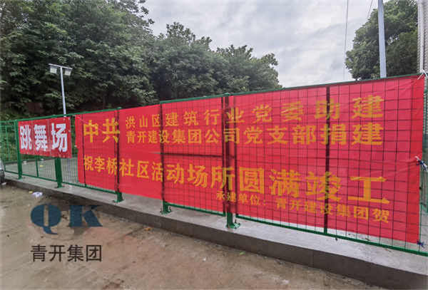 此活动场所由中共青开建设集团党支部公益捐赠,积极出资出力,完善村内基础活动场所设施。于2022年5月16日开工,经过大半个月的紧张施工,由以前的停车场改造成现在的活动场所——跳舞场,目前李家桥社区活动广场顺利完成竣工,现已全面投入使用。